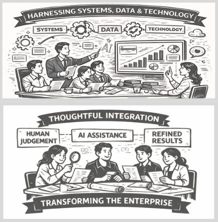 After more than eight months, we have made considerable progress in thoughtfully integrating AI into both our internal operations and client-facing tasks. This experience has revealed new ways to reimagine how our enterprise operates in the age of AI, and how we can thoughtfully leverage these technologies.