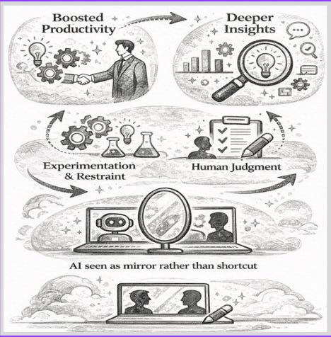 AI helped us work faster, but it also made visible the difference between surface-level responses and genuinely considered insight. In this way, technology became less of a shortcut and more of mirror—reflecting the quality of questions we asked and the discipline we brought to our work.